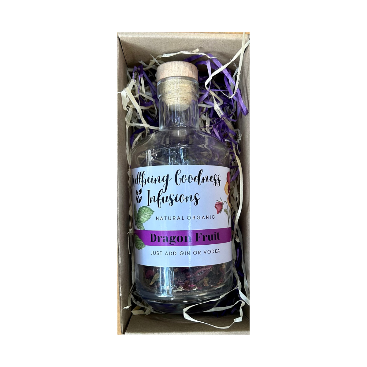 The Just-Add-Gin: Dragon Fruit Infusion offers a delightful blend of flavors, combining the sweetness of dragon fruit with hints of pear and kiwi, complemented by citrus undertones.